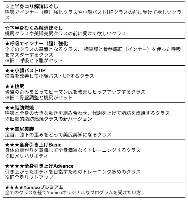 新しいクラスラインナップで、皆さまの身体がより快適に、より美しく変化していくことをサポートしてまいります。